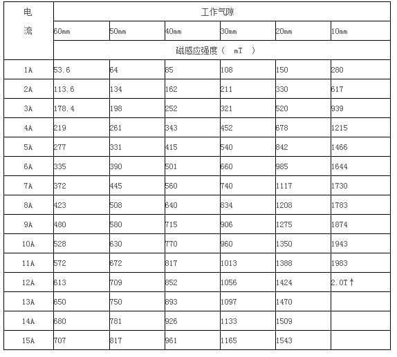 2.5、剩 磁:H ≤10mT,工作氣隙10mm時,