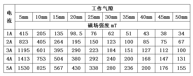 2.5、最大磁場:工作氣隙5mm時,H ≥ 1.5T